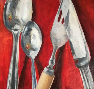 bestek op rood kleed